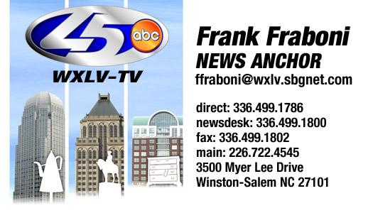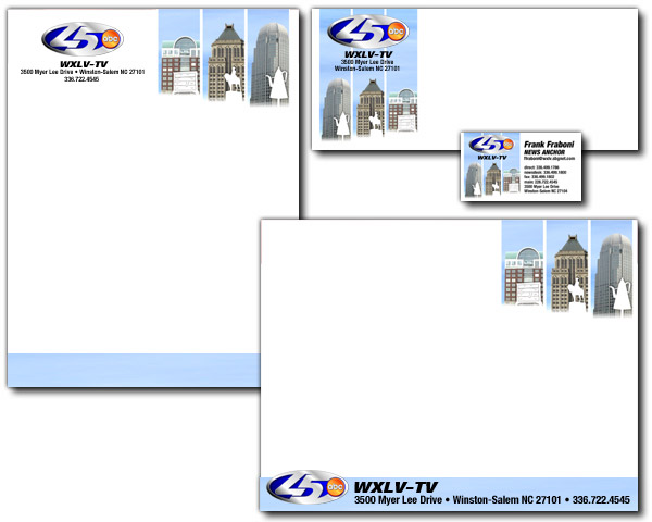 Business card design for TV station WXLV-TV, utilizing images of landmarks from the market's three major cities: