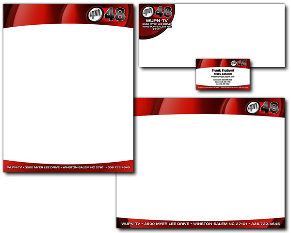 Letterhead and business card design for TV station UPN48, Winston-Salem, 2004.